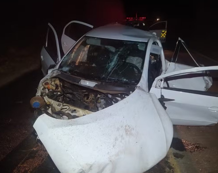 De acordo com a Polícia Militar Rodoviária, o motorista do veículo, de 24 anos, perdeu a direção, chocou o carro contra um barranco e, em seguida, capotou.