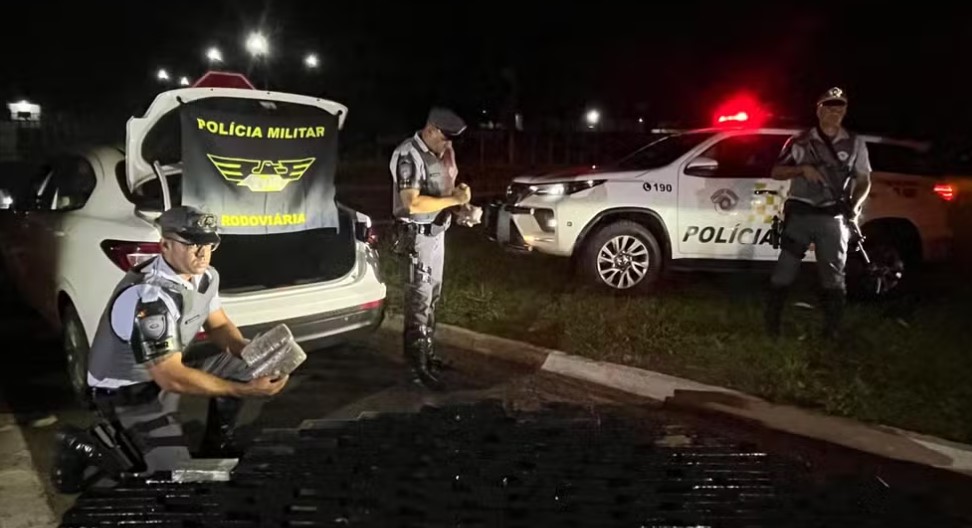 Segundo a Polícia Rodoviária, uma equipe abordou um carro com placas de Birigui (SP) e ocupado pelos dois envolvidos. Durante vistoria veicular, os agentes localizaram 96 tabletes de maconha e 12 tabletes de skank dentro de caixas de papelão no porta-malas do veículo, que totalizaram 85,052 kg.