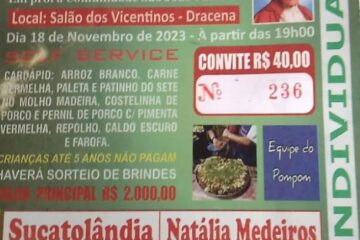 Dia 18 de novembro de 2023. À partir das 19h00 Local :Salão dos Vicentinos -Dracena