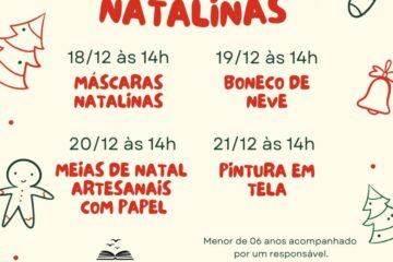 A Secretaria de Cultura e Turismo de Dracena, por meio da Biblioteca Municipal, promoverá oficinas natalinas nos dias 18, 19, 20 e 21 de dezembro. São diversas atividades gratuitas para as crianças. Confira o cronograma: 18/12, às 14h: Máscaras natalinas; 19/12, às 14h: Boneco de neve; 20/12, às 14h: Meias Leia mais