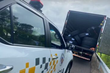 Polícia Militar Rodoviária apreendeu nesta sexta-feira (22), em Regente Feijó (SP), uma carga de 100 pneus automotivos contrabandeados do Paraguai que eram transportados na carroceria de um caminhão-baú. O veículo, com placas de Belo Horizonte (MG), foi abordado pela fiscalização no km 449 da Rodovia Assis Chateaubriand (SP-425). O motorista e o Leia mais