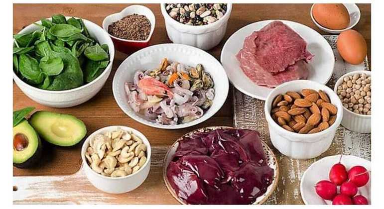 Podemos encontrar: carne vermelha, peixe, frango, arroz integral, feijão, grão-de-bico, lentilha, gema de ovo, espinafre, camarão, castanhas, amendoim e chocolate amargo.
