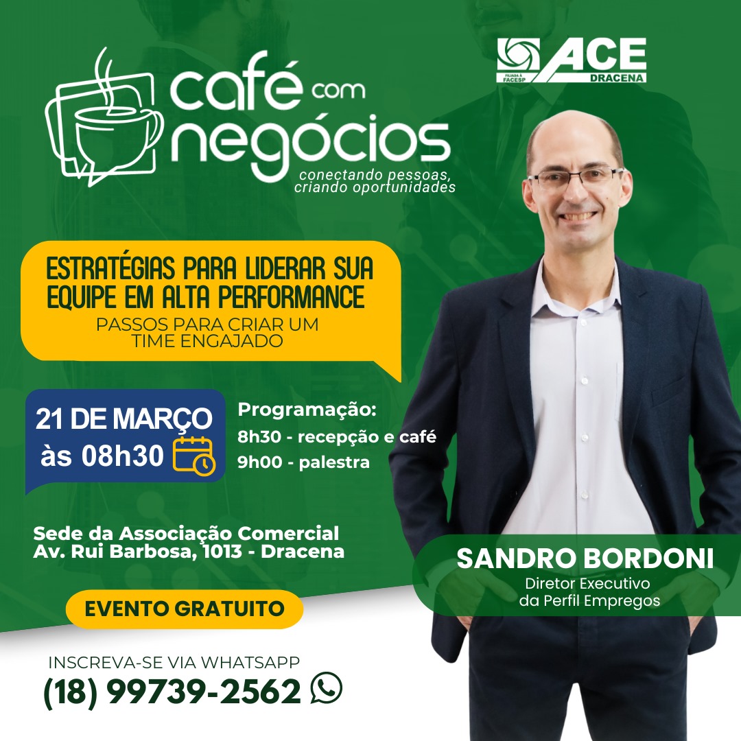 A Associação Comercial Empresarial de Dracena realiza 21 de março (quinta-feira), a 1ª edição do Café com Negócios, exclusivo para associados.