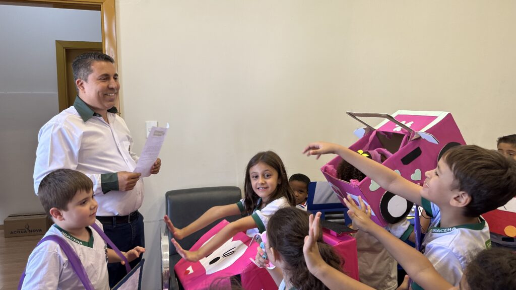 As crianças entregaram ao prefeito o ofício nº 259/2023 solicitando mudanças no trânsito ao redor da unidade escolar. O ofício cita que sejam analisadas e tomadas medidas cautelares como, mão única da Rua Edson da Silveira Campos até o cruzamento da Rua Nossa Senhora Aparecida e mão única também entre a Rua Edson da Silveira Campos e Princesa Isabel.