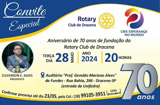 ANIVERSÁRIO DE 70 ANOS DE FUNDAÇÃO DO ROTARY CLUB DE DRACENA