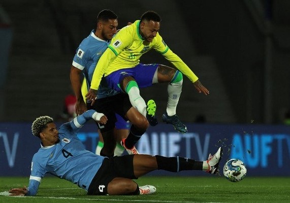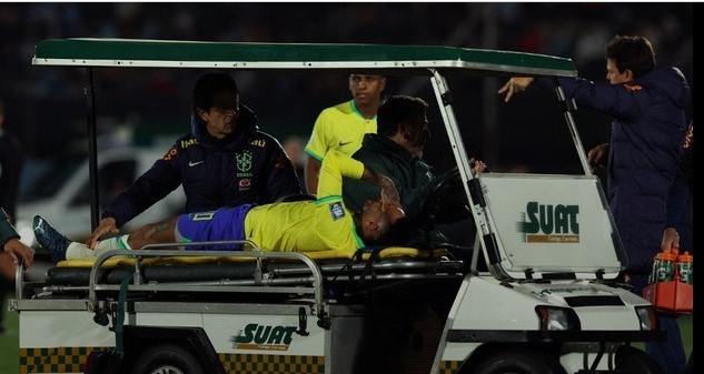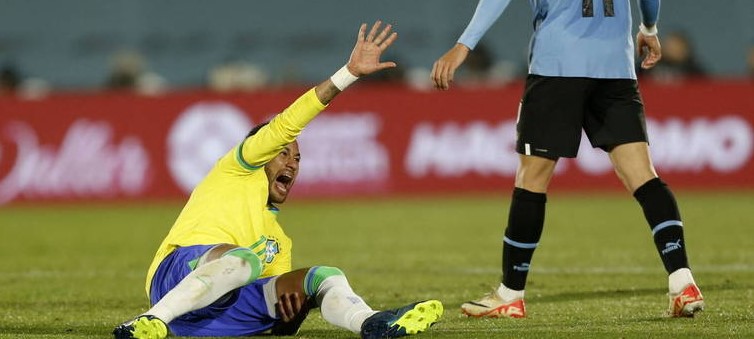 O time de Fernando Diniz tinha dificuldade de sair da forte marcação uruguaia e, quando encontrava os espaços para avançar em velocidade, esbarrava em erros de jogadores que não costumam errar, como Vinícius Jr., Rodrygo e Neymar. O camisa 10, inclusive, deixou o campo em lágrimas, e de maca, após se lesionar sozinho em lance no meio de campo.