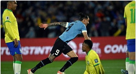 Em partida pouco inspirada dos comandados de Fernando Diniz, o Brasil perdeu por 2 a 0 para o Uruguai nesta terça-feira (17), no estádio Centenário, em Montevidéu, em jogo válido pela quarta rodada das Eliminatórias Sul-Americanas para a Copa do Mundo de 2026. Darwin Nuñez e De La Cruz fizeram os gols dos donos da casa, que, além de vencerem a seleção brasileira, quebraram também uma marca de 37 jogos de invencibilidade da pentacampeã do mundo nas Eliminatórias. O Brasil não perdia pela competição desde outubro de 2015, quando caiu para o Chile.