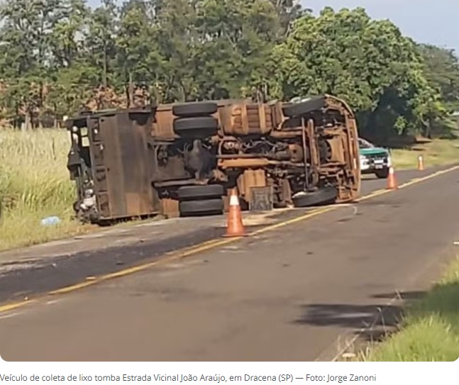 Um caminhão da Prefeitura de Dracena (SP) tombou na Estrada Vicinal João Araújo na manhã desta terça-feira (2). O motorista precisou ser socorrido.
