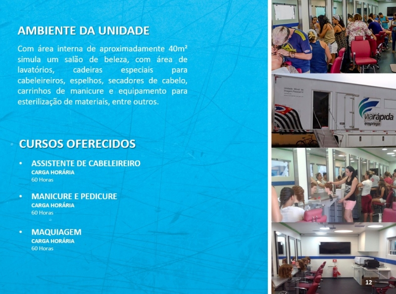 Amanhã, 1º, chegará em Dracena, a carreta de imagem pessoal, da Secretaria de Desenvolvimento Econômico do Estado de São Paulo, que oferecerá três cursos na área da beleza. O veículo ficará estacionado durante o mês de dezembro, no estacionamento do Paço Municipal.