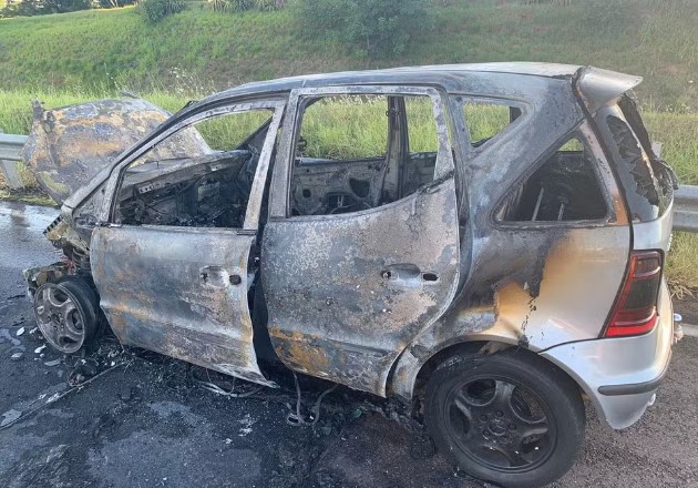 CARRO FICA TOTALMENTE DESTRUÍDO APÓS PEGAR FOGO