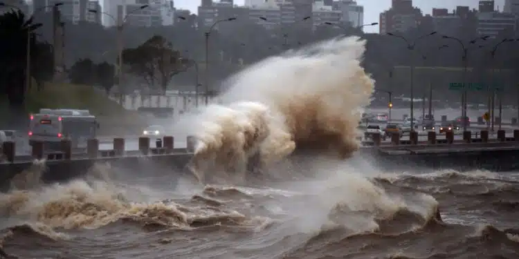 Ao mesmo tempo, uma intensa corrente de vento avançava pelo Norte da Argentina até o Uruguai e o Rio Grande do Sul com ar muito quente, fator que forneceu energia para instabilizar a atmosfera acentuadamente ao encontrar a “baixa fria”, gerando chuva intensa a excessiva com temporais fortes a severos de vento e granizo.