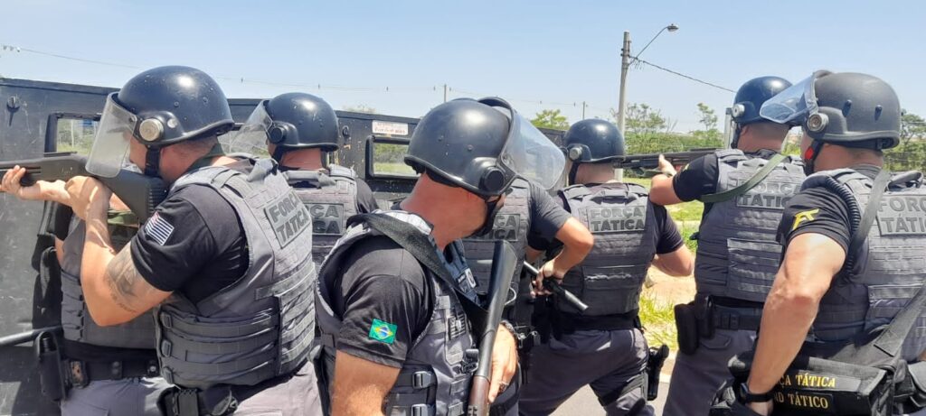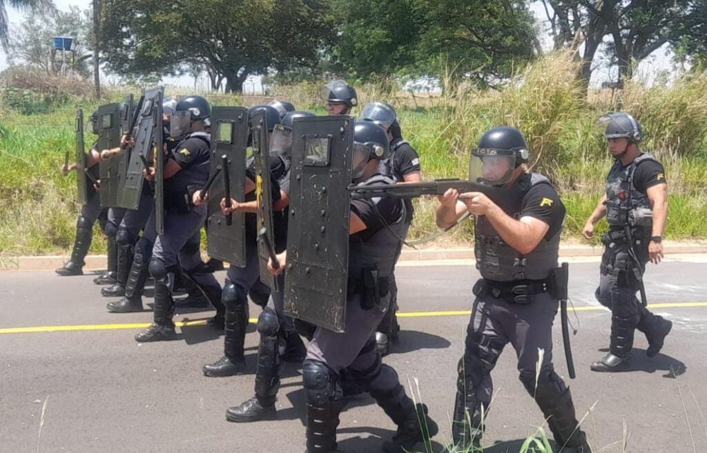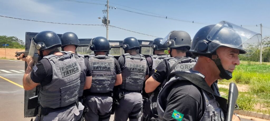 A Companhia de Força Tática do 25º BPMI sempre preparada para atuar em situações extremas, realiza treinamentos constantes com seus policiais e na manhã de ontem (23) o efetivo foi treinado pelo Capitão PM Ederson e Tenente PM Fenille para ações de controle de multidões. Foram realizados diversos procedimentos com a utilização dos equipamentos, munições para uso em ações quando necessárias para que o efetivo policial esteja preparado para todas as situações .