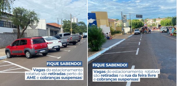 Vagas de estacionamento rotativo são retiradas perto do Ame de Dracena e cobrança suspensas