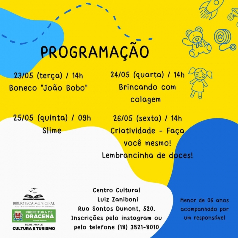 Compreendendo essa relevância, a Secretaria de Cultura e Turismo de Dracena, por meio da Biblioteca Municipal, irá promover, entre os dias 23 a 26 de maio, a Semana Mundial do Brincar.