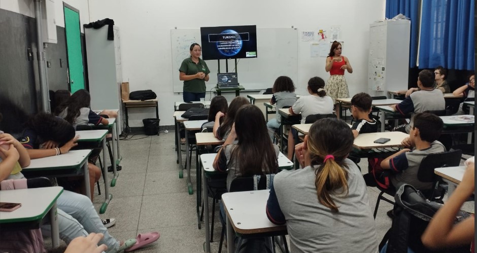 A convite da E.E. Eng. Isac Pereira Garcez, o Departamento de Turismo de Dracena, representada pela coordenadora de Turismo Lucinéia Figueiredo, realizou, na tarde de sexta-feira (29), uma palestra sobre Turismo com os alunos da eletiva Uma Voltinha pelo Brasil.