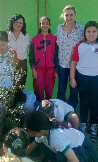 A diretora do Meio Ambiente Dulci Guastaldi coordenou a atividade ao lado do engenheiro ambiental Murillo Viana com a recepção da diretora da escola, Eliane Santana.