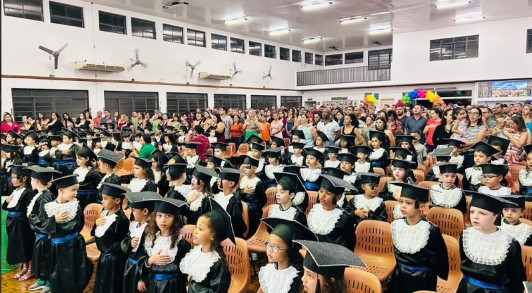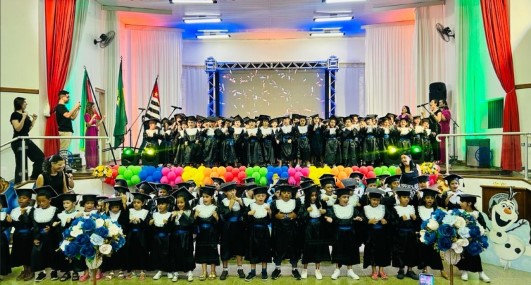 Em seguida, foi a vez dos pequenos estudantes receberem seus diplomas de conclusão da Educação Infantil. Com sorrisos radiantes e olhos cheios de brilho, eles subiram ao palco para receber o reconhecimento por todo o esforço e aprendizado adquirido durante essa importante fase educacional.