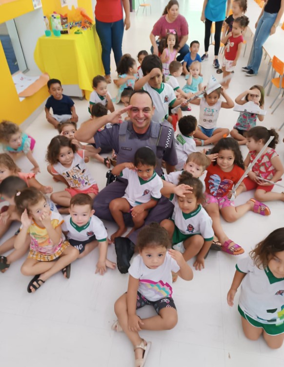 Na data de (25) o policial Leiswladio foi convidado a desenvolver atividade com crianças até 4 anos pelo Dia do Soldado na EMEI Dona ZiZi a desenvolver uma atividade com crianças, explicando de forma lúdica o que é o dia do Soldado e o qual trabalho que a Polícia Militar realiza.