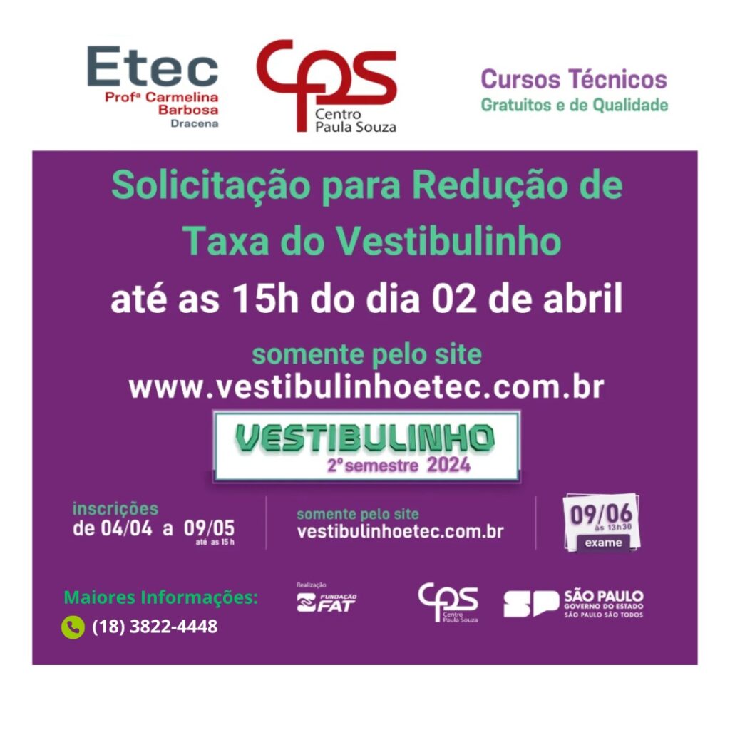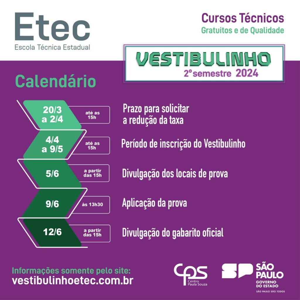 O Curso tem duração de 1 ano e meio, e é totalmente gratuito. Faça sua inscrição para o vestibular no site: www.vestibulinhoetec.com.br.