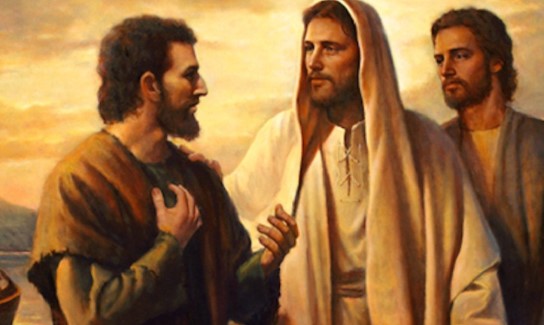 No dia seguinte, estava lá João outra vez com dois dos seus discípulos. E, avistando Jesus que ia passando, disse: Eis o Cordeiro de Deus. Os dois discípulos ouviram-no falar e seguiram Jesus. Voltando-se Jesus e vendo que o seguiam, perguntou-lhes: Que procurais? Disseram-lhe: Rabi (que quer dizer Mestre), onde moras? Vinde e vede, respondeu-lhes ele. Foram aonde ele morava e ficaram com ele aquele dia. Era cerca da hora décima. André, irmão de Simão Pedro, era um dos dois que tinham ouvido João e que o tinham seguido. Foi ele então logo à procura de seu irmão e disse-lhe: Achamos o Messias (que quer dizer o Cristo). Levou-o a Jesus, e Jesus, fixando nele o olhar, disse: Tu és Simão, filho de João; serás chamado Cefas (que quer dizer pedra).