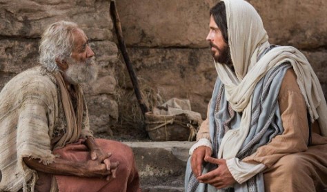Trouxeram-lhe um paralítico, carregado por quatro homens. Como não conseguiam apresentá-lo a ele, por causa da multidão, abriram o teto, bem em cima do lugar onde ele estava e, pelo buraco, desceram a maca em que o paralítico estava deitado. Vendo a fé que eles tinham, Jesus disse ao paralítico: «Filho, os teus pecados são perdoados».