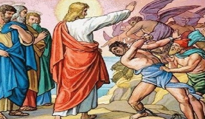 Jesus e os discípulos chegaram à outra margem do mar, na região dos gerasenos. Logo que Jesus desceu do barco, um homem que tinha um espírito impuro saiu do meio dos túmulos e foi a seu encontro. Ele morava nos túmulos, e ninguém conseguia amarrá-lo, nem mesmo com correntes. Muitas vezes tinha sido preso com grilhões e com correntes, mas ele arrebentava as correntes e quebrava os grilhões, e ninguém conseguia dominá-lo. Dia e noite andava entre os túmulos e pelos morros, gritando e ferindo-se com pedras. Ao ver Jesus, de longe, o homem correu, caiu de joelhos diante dele e gritou bem alto: «Que queres de mim, Jesus, Filho de Deus Altíssimo? Por Deus, não me atormentes!». Jesus, porém, disse-lhe: «Espírito impuro, sai deste homem!»- E perguntou-lhe: «Qual é o teu nome?» Ele respondeu: «Legião é meu nome, pois somos muitos». E suplicava-lhe para que não o expulsasse daquela região
