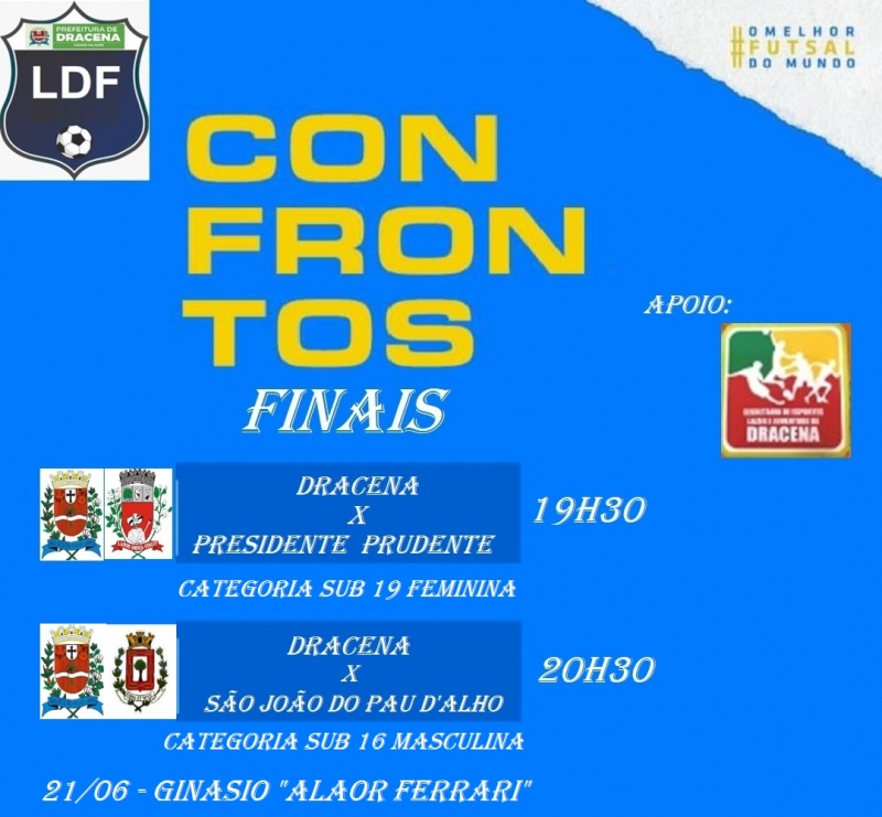 Os jogos terão início as 19h30, quando entrarão em quadra as equipes da categoria sub 19 feminina de Dracena e Presidente Prudente. Já as 20h30 a decisão será da categoria sub 16 masculina, entre Dracena e São João do Pau D’alho.