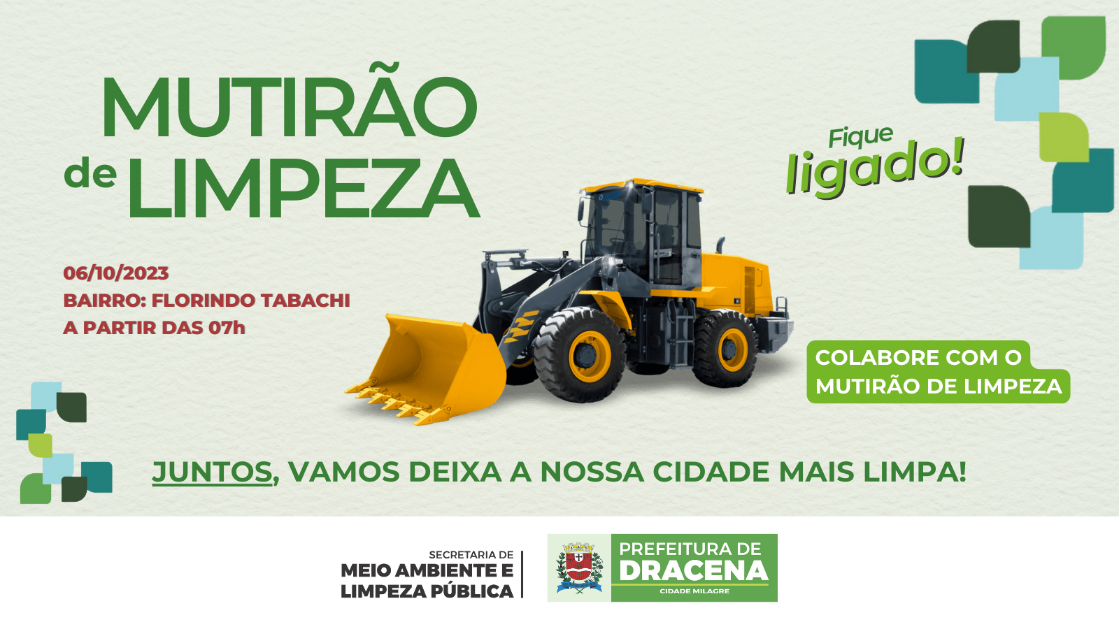 A Secretaria de Limpeza Pública e Meio Ambiente realizará mutirão de limpeza no Bairro Florindo Tabachi na próxima sexta-feira (06/10), a partir das 7h.