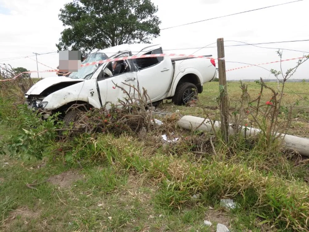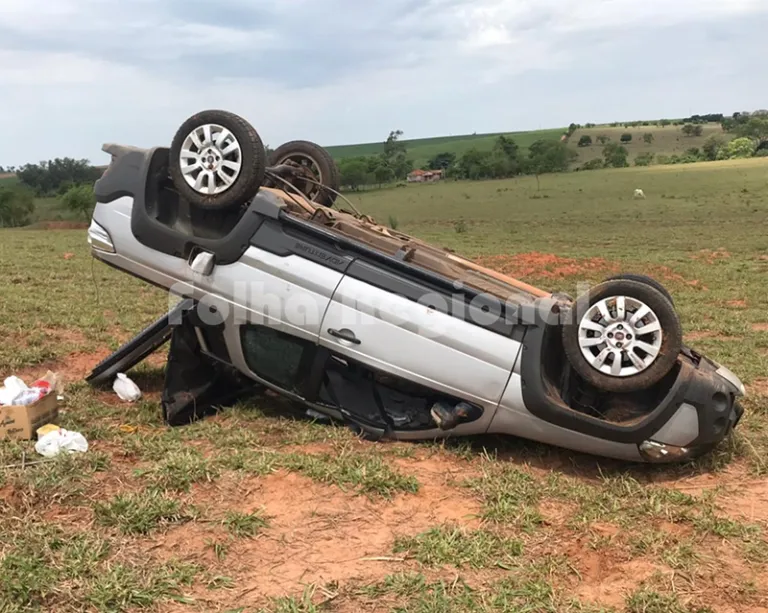 Após atingir a cerca, veículo capotou e parou com as rodas “para o ar” no meio do pasto.