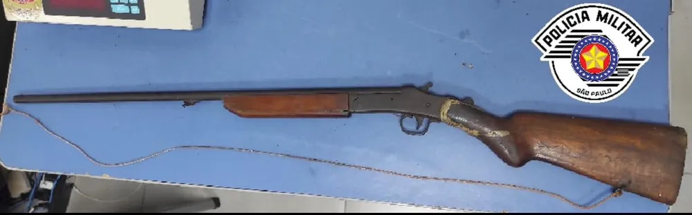 Já a vítima negou a agressão e disse que apenas empurrou o marido para fora de casa. Ainda durante a conversa, o filho do casal informou aos policiais que seu pai guardava uma espingarda no interior da residência.