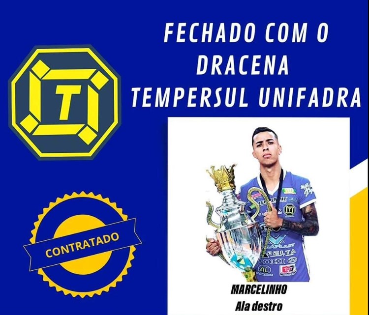 Bicampeão da Liga Paulista de Futsal pelo Dracena Tempersul Unifadra em 2020 e 2021, o ala Marcelinho está de volta ao Oeste Paulista para a temporada 2024.
