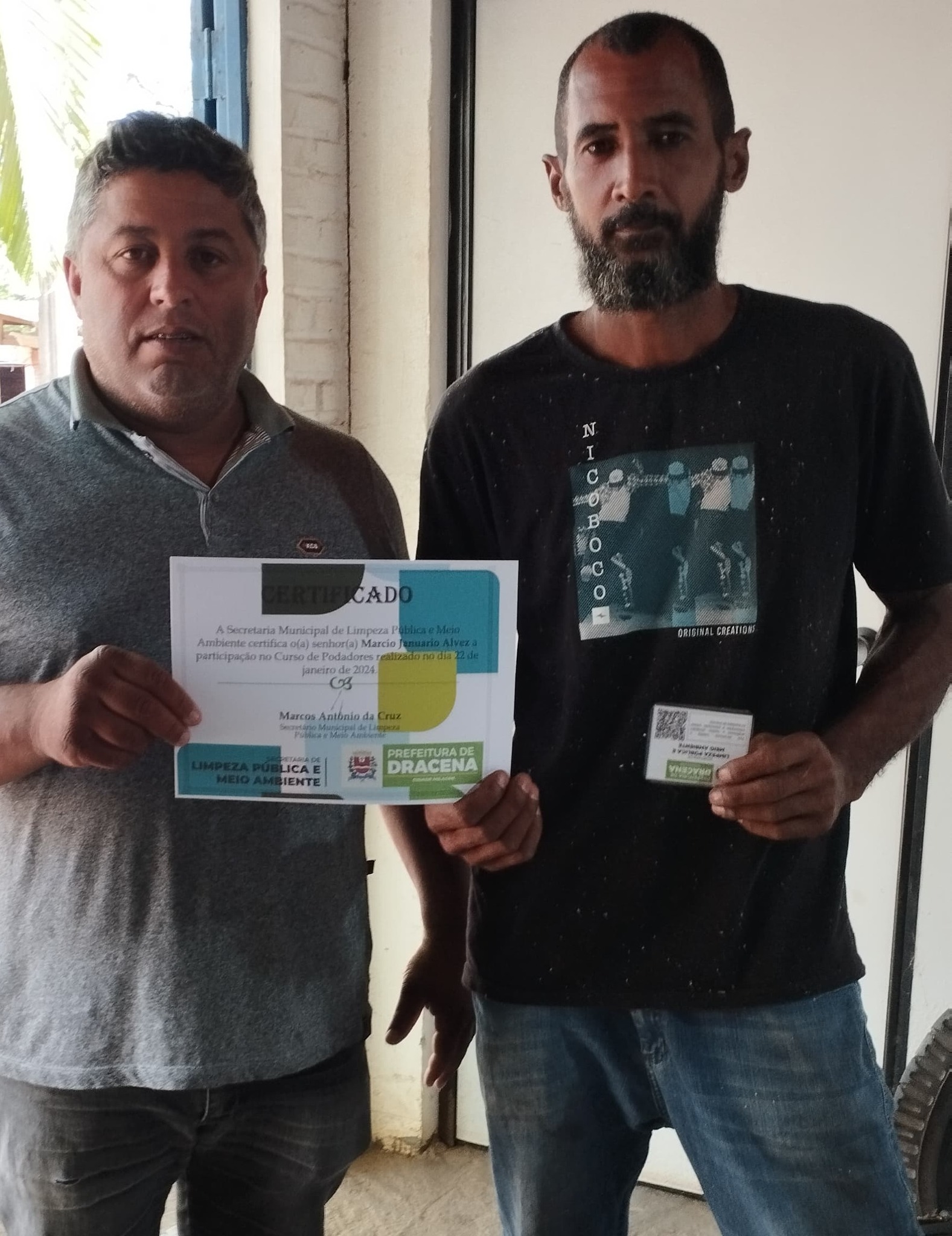 A Secretaria de Limpeza Pública e Meio Ambiente de Dracena , por meio do secretário Marcos Antônio da Cruz, começou a entregar na data de ontem , 24, os certificados e as carteiras aos podadores de árvores, que participaram do curso voltado à categoria.