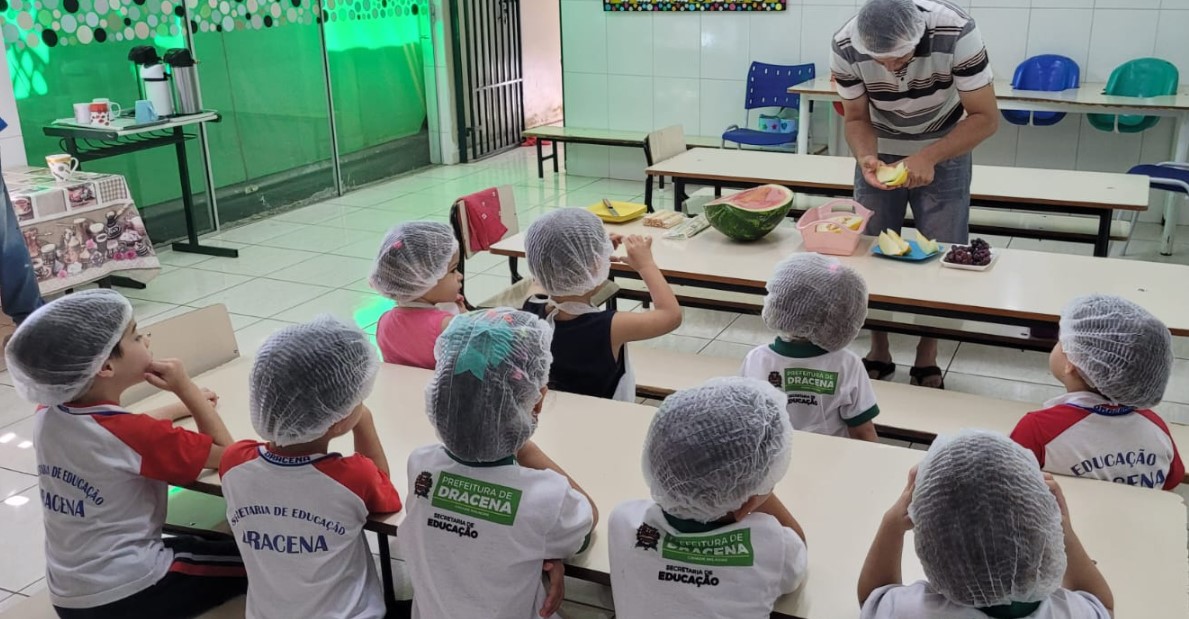 Na última semana, os alunos do maternal A da EMEI Criança Feliz, do distrito de Jaciporã, desenvolveram, se maneira lúdica, uma receita saudável com alimentos que contém muita água. A atividade faz parte de um projeto do Programa “A União Faz a Vida” e favoreceu aprendizagens significativas e aumento de vínculos entre as crianças e seus familiares.