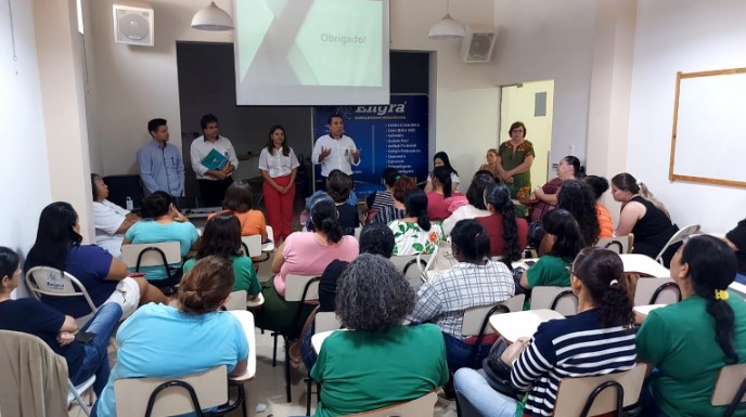 Durante o curso, as merendeiras foram instruídas sobre a forma correta de carregar pesos, utilizar corretamente os Equipamentos de Proteção Individuais (EPIs), como prevenir e tratar queimaduras, entre outros assuntos.