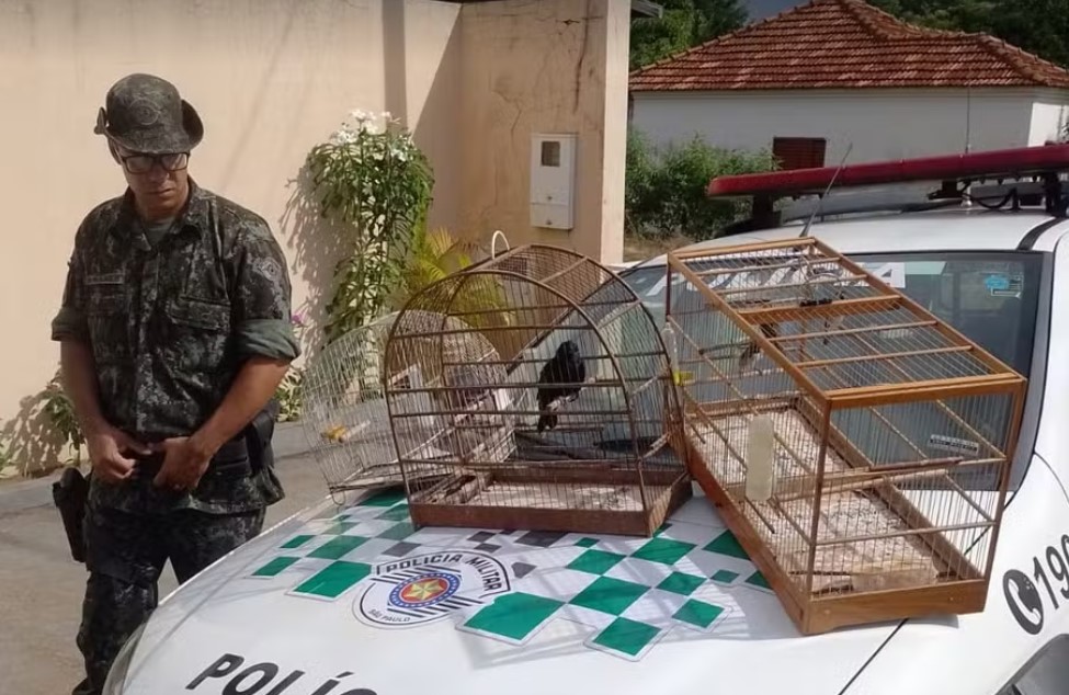 Foram encontrados quatro coleirinhos e um pássaro preto mantidos em cativeiro sem anilhas e 12 aves exóticas e híbridas, sendo seis pintassilgos venezuelanos e seis pintagol, sem comprovação de origem