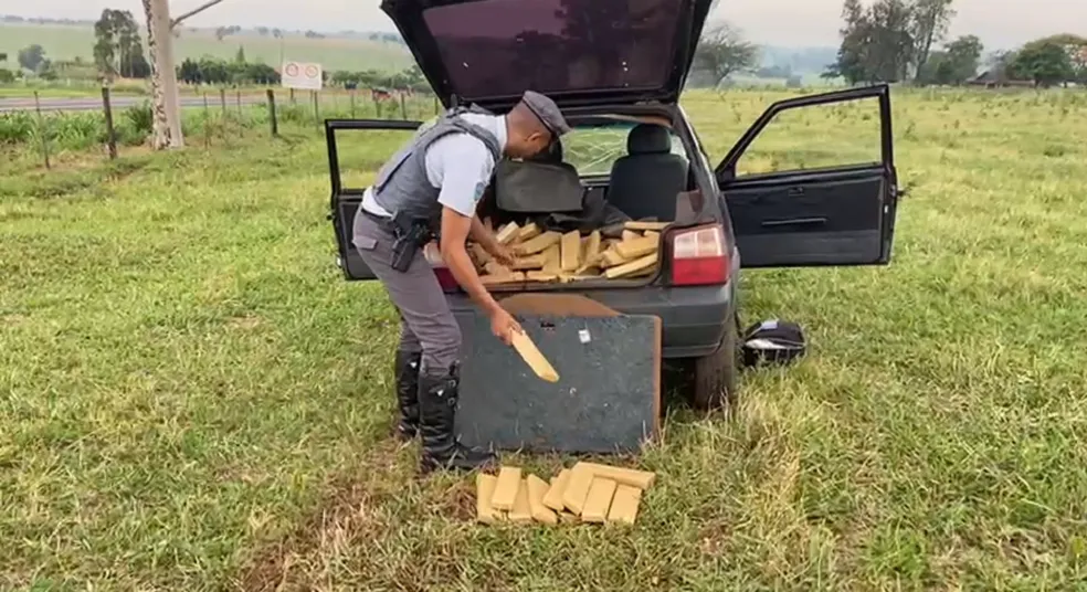 Segundo a Polícia Rodoviária, um carro com placas de Sidrolândia (MS) transitava em alta velocidade e com excesso de peso aparente. Ao perceber a aproximação das viaturas, o condutor tentou fugir e adentrou em um pasto às margens da rodovia, porém o veículo foi abordado.