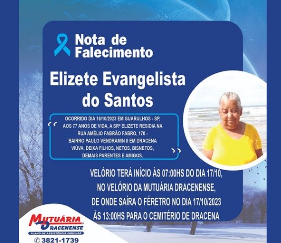 Manifestamos nossos sentimentos a todos os familiares e amigos