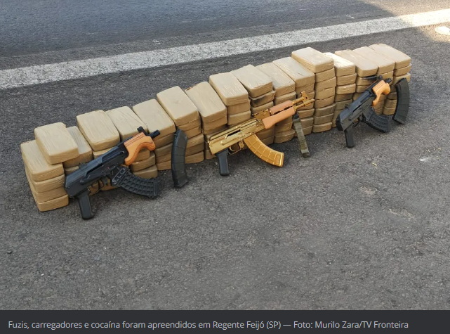 Uma operação policial apreendeu três fuzis de calibre 7.62, seis carregadores de munições e ainda cerca de 100 quilos de cocaína, nesta segunda-feira (7), em Regente Feijó (SP).