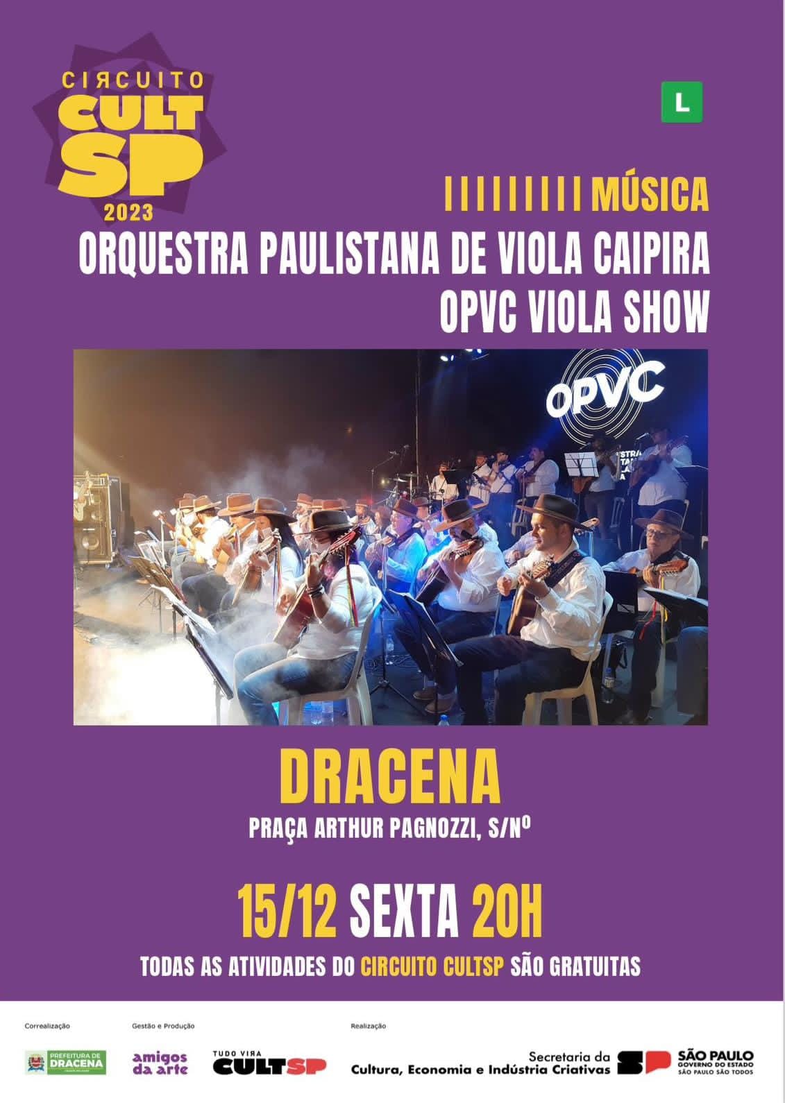 Além da apresentação de domingo, na sexta-feira (15) a Orquestra Paulista de Viola Caipira fará uma apresentação na Praça Arthur Pagnozzi, com início às 20h. O evento será aberto.