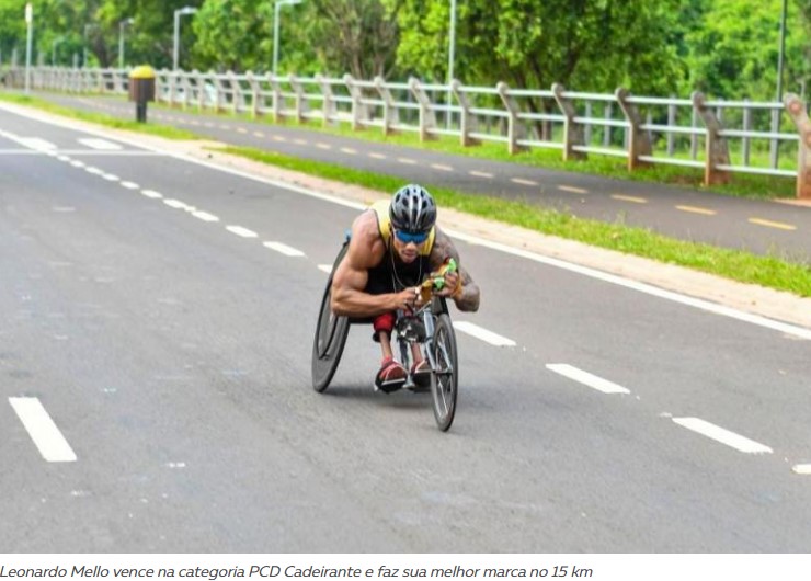 Com o tempo de 39m31s, o atleta paralímpico prudentino, que mora em São Paulo, Leonardo Mello (leomello.90), 28 anos, venceu, ontem, na categoria PCD Cadeirante 15 km (quilômetros), a Corrida do Pantanal, promovida pelo Sesi (Serviço Social da Indústria), em parceria com o Sistema Fiems e TV Morena, em Campo Grande, no Mato Grosso do Sul. “A prova foi insana mesmo, pesada, estava muito calor, a largada foi 6h da manhã, mas graças a Deus a gente conseguiu fazer um ótimo resultado, aliás, fiz a minha melhor marca da prova dos 15k”, destaca o atleta, que treina no Centro de Treinamento Paraolímpico Brasileiro na capital paulista, onde reside há um ano e meio.