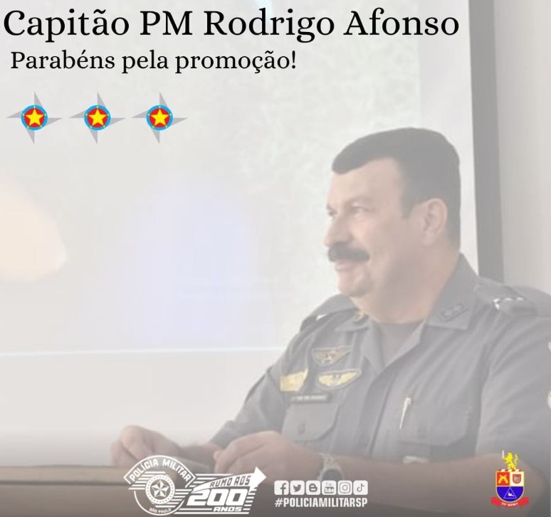 Na área do 25ºBPM é com imensa satisfação de realçar a promoção do Major PM Julio Marcelo Romagnoli dos Santos ao posto de Tenente Coronel PM e o 1° Tenente PM Rodrigo César Afonso ao posto de Capitão PM.