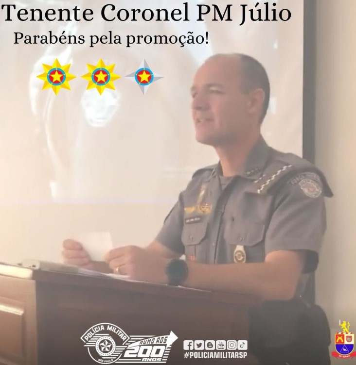 Na área do 25ºBPM é com imensa satisfação de realçar a promoção do Major PM Julio Marcelo Romagnoli dos Santos ao posto de Tenente Coronel PM e o 1° Tenente PM Rodrigo César Afonso ao posto de Capitão PM.