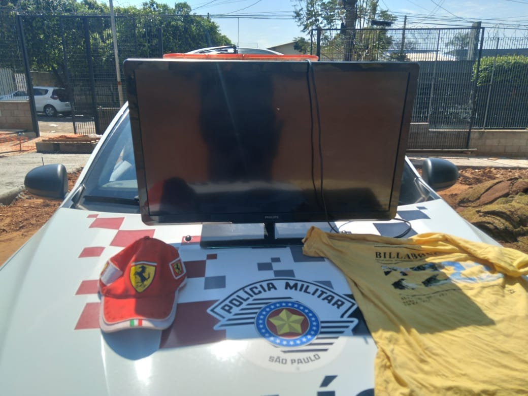 Na data de ontem (23) por volta das 10h40min durante turno de serviço em Dracena foi irradiado via Copom que duas pessoas em atitude suspeita transitavam pela rua Marechal Deodoro da Fonseca com uma TV, foi intensificado o patrulhamento com vistas as características dos suspeitos, sendo encontrados e abordados na rua Anália Franco onde os suspeitos ao avistarem a viatura empreenderam fuga sendo possível abordar apenas um dos suspeitos ( homem 23 anos), o outro tomou rumo ignorado, o suspeito não estava com a TV. Foram realizadas buscas pelas equipes da Polícia Militar no intuito de localizar o objeto furtado, sendo a TV encontrada na posse de um mulher moradora da rua Gastão Vidigal ( mulher 22 anos) que declarou ter adquirido a TV por duzentos reais dos averiguados. O local do furto foi identificado como rua Carlos Gomes onde a vítima 51 anos reconheceu a propriedade da rés furtiva, uma TV Philips 32 polegadas na cor preta. Diante dos fatos foi dada voz de prisão ao indiciado permanecendo a disposição da Justiça. A mulher foi indiciada por receptação.