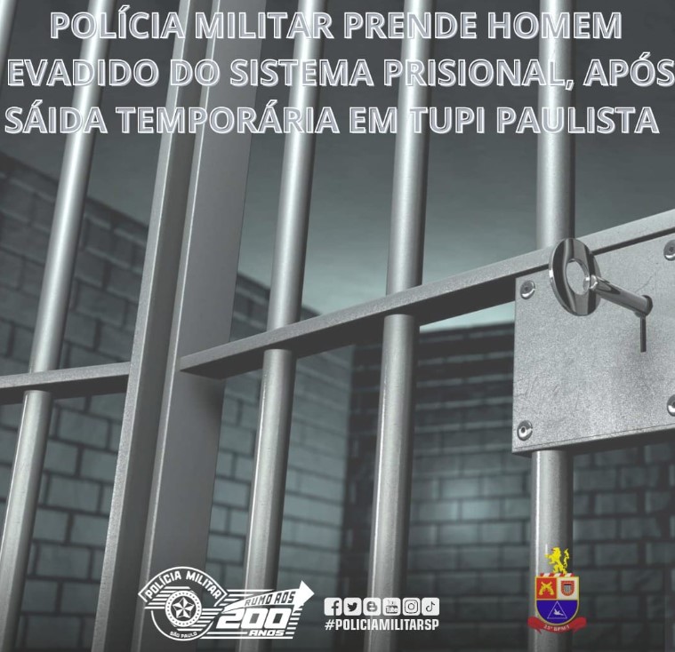Nesta quarta-feira dia 10 de janeiro, os policiais da Força Tática do 25º Batalhão de Polícia Militar do Interior capturaram um homem evadido do sistema carcerário em Tupi Paulista.