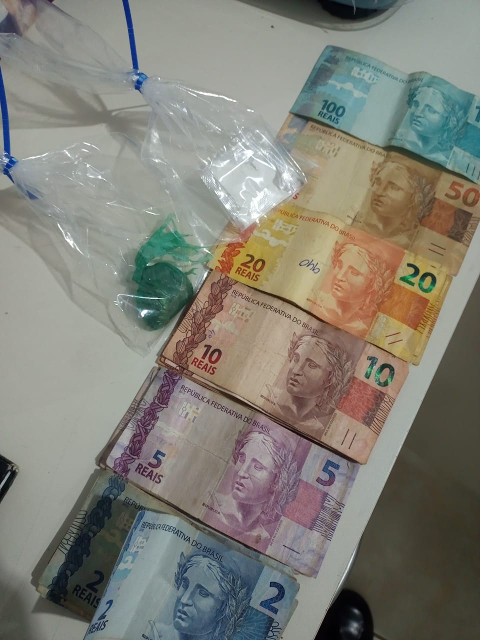 Na data dia (30) do 07 por volta 20h30min a equipe da Polícia Militar em patrulhamento pelo município de Salmourão, avistaram uma motocicleta vermelha conduzida por um indivíduo, que ao perceber a presença da equipe policial realizou uma manobra brusca e retornou na mesma via aumentando a velocidade, iniciando o acompanhamento e visualizaram quando o condutor da motocicleta dispensou objetos ao solo, após alguns metros conseguimos realizar a abordagem, na revista pessoal foi localizado em um dos bolsos do short 02 (dois) papelotes de cocaína, no outro bolso um celular e escondido nas vestes íntimas uma quantia de R$425,00 (quatrocentos e vinte e cinco reais), e ao retornar ao local que o indivíduo havia dispensado os objetos e localizaram uma sacola verde contende em seu interior um pequeno tablete de maconha, realizado consulta foi constatado que condutor estava descumprindo uma medida cautelar referente a horário e que o mesmo não era habilitado. Diante dos fatos foi dada a voz de prisão ao autor e conduzido ao Plantão de Polícia Judiciária, onde foi ouvido e liberado.