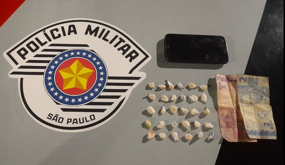 A equipe realizava o patrulhamento pelo bairro Marrecas no município de Panorama, e avistaram duas pessoas, sendo que uma delas adentrou um terreno vazio e ao retornar e visualizar a viatura e tentou empreender fuga, sendo logo abordado (masculino 21 anos) e submetido a busca pessoal, foi localizado na bermuda uma porção de substância análoga a crack, um aparelho de telefone celular e uma quantia em dinheiro, indagado informou que a droga seria vendida a um usuário, e mostrou o local onde estava homiziada uma sacola plástica, contendo mais 29 porções de crack. Diante dos fatos o autor foi encaminhado ao Plantão de Polícia Judiciária de Dracena, onde permaneceu à disposição da Justiça.