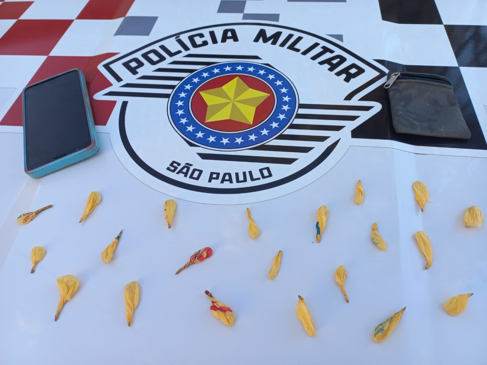 O indiciado foi localizado em uma chácara e ao visualizar a viatura, o autor evadiu-se, deixando ( 21) vinte e uma porção de crack e aparelho de celular marca samsung, modelo a1, na posse de sua amásia (mulher 18 anos), juntamente com o veículo honda/NX-4 falcon, que outrora havia negociado com droga.