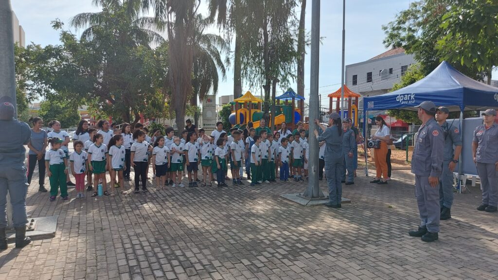 Para a solenidade de hasteamento das bandeiras, foram convidados os alunos do Projeto Criança Feliz, que puderam aprender sobre as cores e os símbolos presentes na Bandeira Nacional. Os militares do Corpo de Bombeiros foram os responsáveis por instalar e hastear as bandeiras, além de coordenar as crianças para entoarem o Hino Nacional no momento do hasteamento.