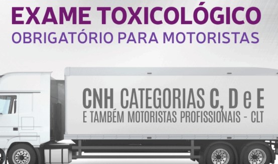 A Senatran (Secretaria Nacional de Trânsito) informa que os condutores das categorias C, D e E devem comprovar resultado negativo em exame toxicológico para obter ou renovar a CNH. A regra está em uma atualização do CTB (Código de Trânsito Brasileiro), no artigo 148-A. Além disso, os que tiverem idade inferior a 70 anos têm de ser submetidos a um novo teste a cada dois anos e seis meses.