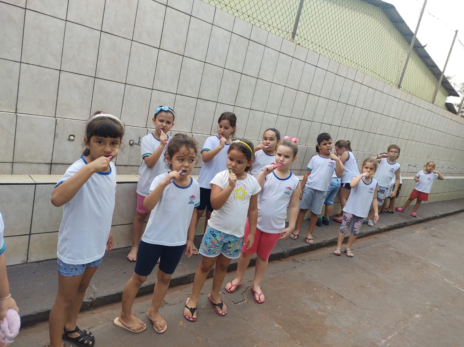 PSE( Programa Saúde na Escola) sem interrupção cuidando dos dentes dos alunos. O programa consiste em evidenciar placa, escovação e aplicação tópica de flúor!
